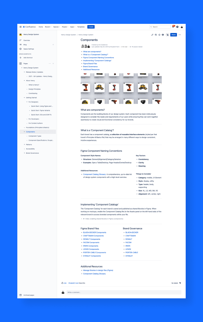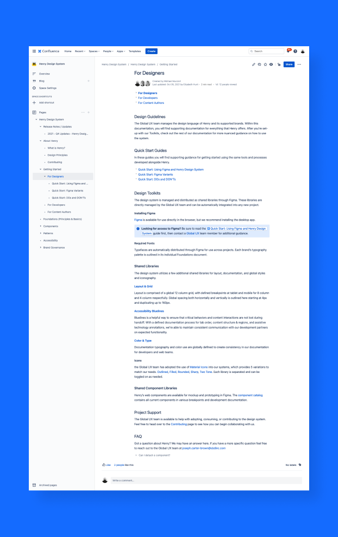 Our team created and maintained documentation resources in a Confluence space, working closely with our design, content author, and development partners to ensure we met their specific needs. The documentation included: