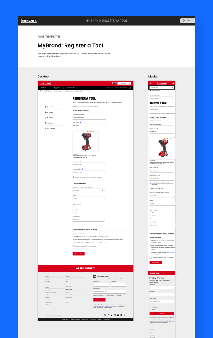 Page Templates represented structurally similar page layouts across brands that address common user objectives (such as a home page, product detail page, etc.). Each brand had a Page Templates file built with its corresponding foundations and components.