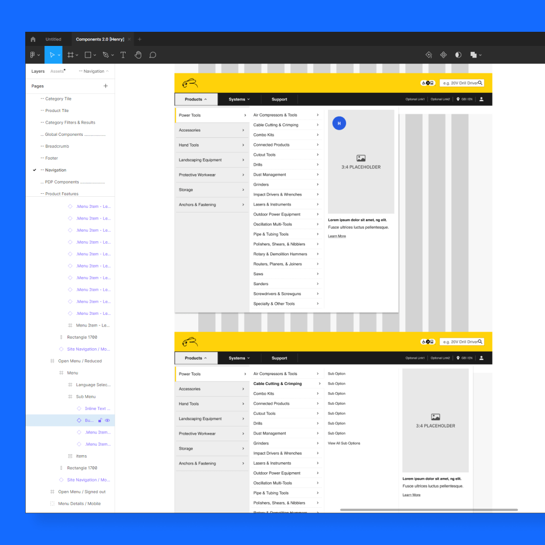 Building and evolving a multi-brand design system called Henry, aligning disparate teams on a unified design language for Stanley Black & Decker's global catalog of online brand experiences.