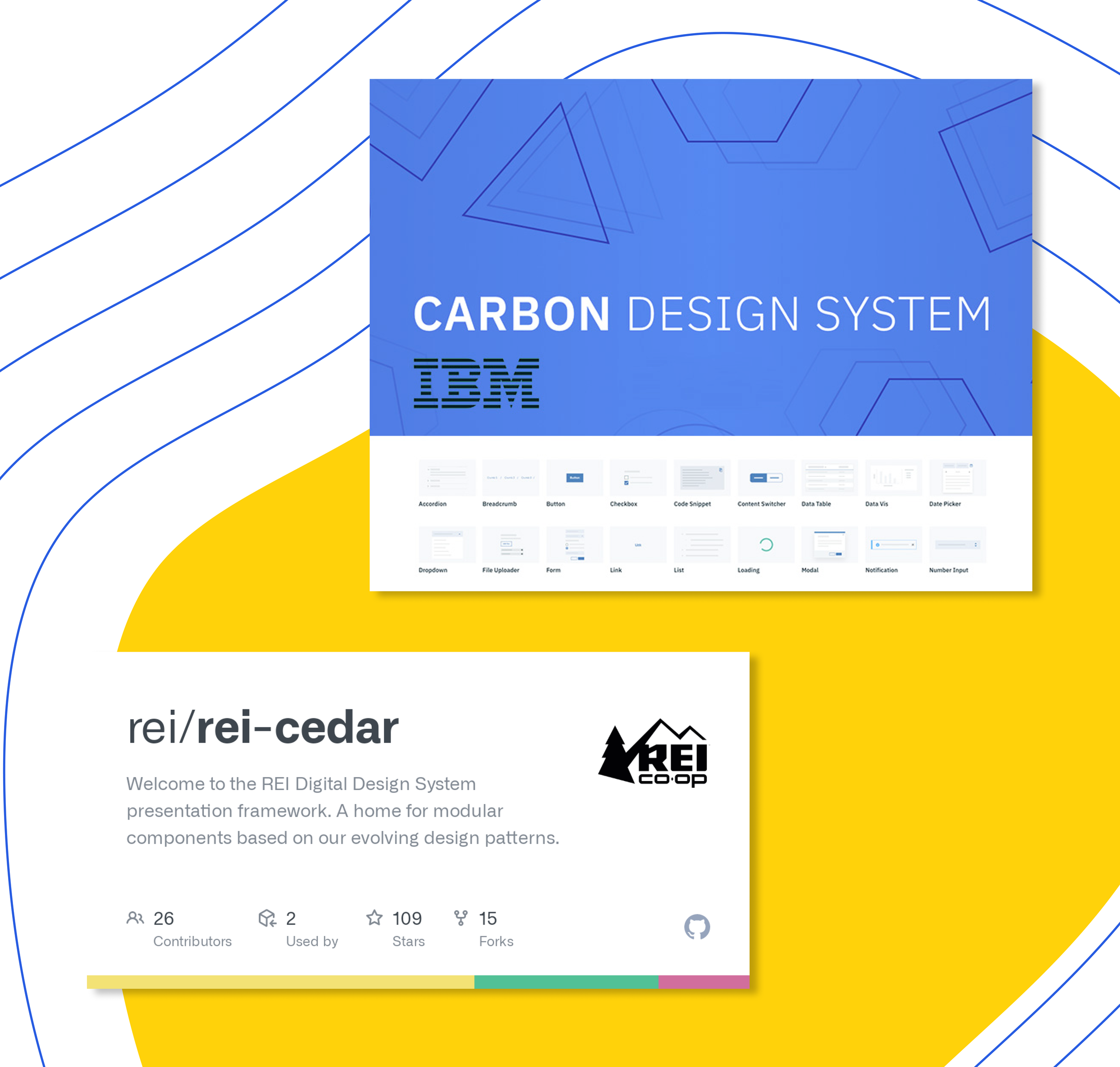 After analyzing our interface inventory, we looked externally at other design systems. We explored established design systems, such as IBM's Carbon and REI's Cedar, to learn from their approach and structure. With the oversight of our team's UX Engineer, we thoughtfully defined the three main parts of our design system: Foundations, Components, and Page Templates.