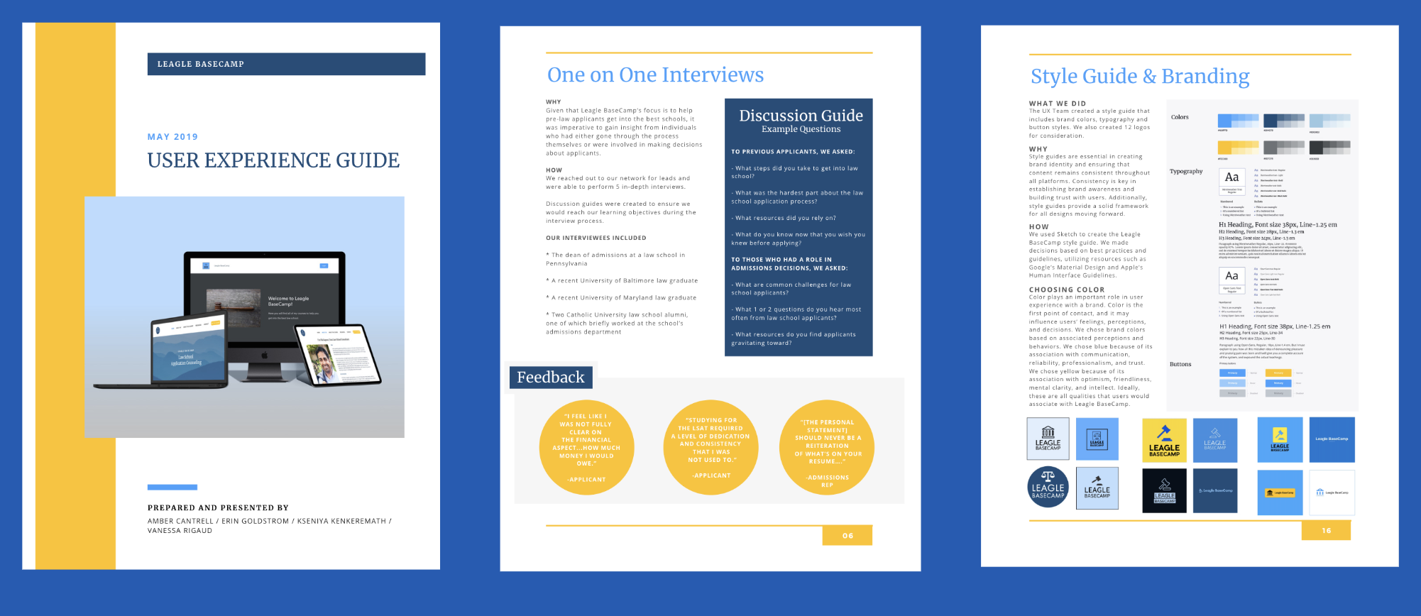 By designing a user centered and trustworthy website and course page, we will allow applicants to engage with Leagle BaseCamp to simplify and facilitate the law school application process.